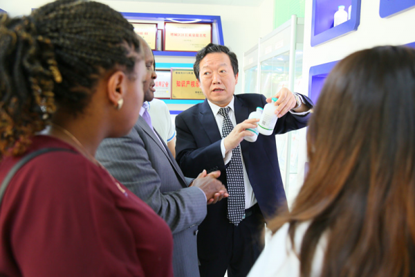11月8日,肯尼亞內羅畢大學團隊在廣州謝諾中非投資管理有限公司魏曉林執行總裁的陪同下到廣州市華南農大生物藥品有限公司(以下簡稱華南生物)進行參觀交流。