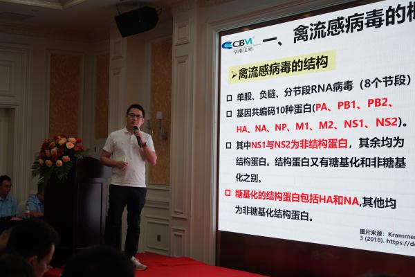 華南生物研究院副院長葉賀佳做“高致病性禽流感疫苗新技術簡介及禽流感疫苗的創制”的主題報告。葉院長介紹了當前禽流感疫苗新的研發技術以及華南生物禽流感疫苗毒株的構建工藝,也為禽流感的研發指明了方向。