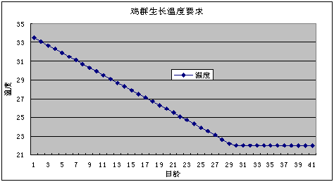 當(dāng)然,在有風(fēng)速的情況下,雞只的感覺溫度是有變化的。縱向通風(fēng)適用于夏天高溫季節(jié),它產(chǎn)生的風(fēng)冷效應(yīng)能使雞只的感覺溫度比實(shí)際溫度下降6-8度,如下圖。在氣候多變的季節(jié),當(dāng)白天溫度達(dá)到27-28C或以上時雞群通常需要進(jìn)行縱向通風(fēng)來降溫,但是隨著下午或晚上外界溫度下降到21度或者更低時,繼續(xù)采用縱向通風(fēng)會對雞群造成不良影響。炎熱季節(jié)縱向通風(fēng)產(chǎn)生的風(fēng)冷效應(yīng)是我們所需要的,但是在外界溫度比較低的情況下因繼續(xù)采用縱向通風(fēng)而嚴(yán)重?fù)p害雞群生產(chǎn)性能的情況也是必須要避免的。