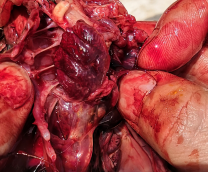 股骨頭壞死,股骨頭軟骨容易脫落;嗉囊白色假膜樣粘附物、潰瘍;腺胃腫大,壁變厚,腺胃乳頭腫脹、潰瘍,有的乳頭融合、界限不清;肌胃角質層增厚、易裂開脫落,甚至出現明顯潰瘍灶;肺充血、出血,肺等器官可見霉菌結節;肝腫大、質脆變性;胸腺萎縮;雞掉毛或出現皮膚壞死。