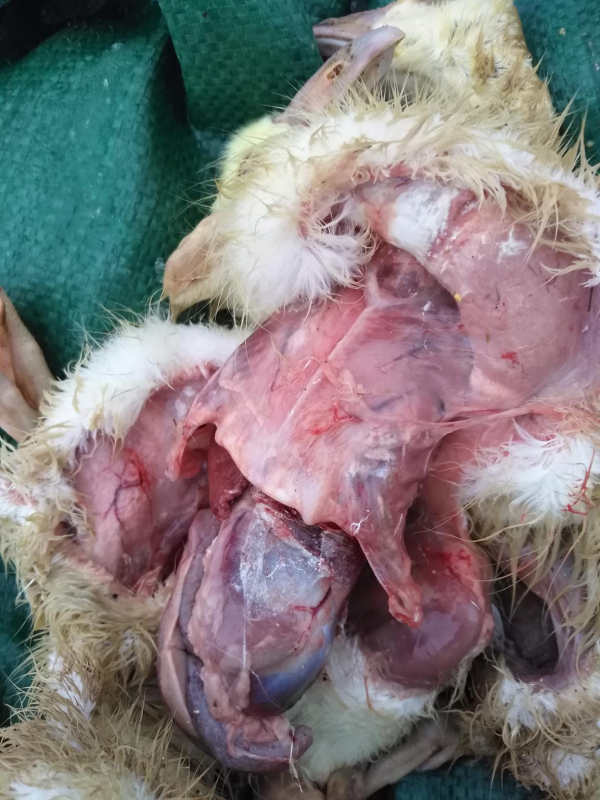 b、長(zhǎng)途運(yùn)輸,加上到了高溫低濕,有的養(yǎng)殖戶只知道保證溫度,卻不知道增加棚內(nèi)濕度,溫度高濕度小易造成雛鵝脫水,引起腎腫。