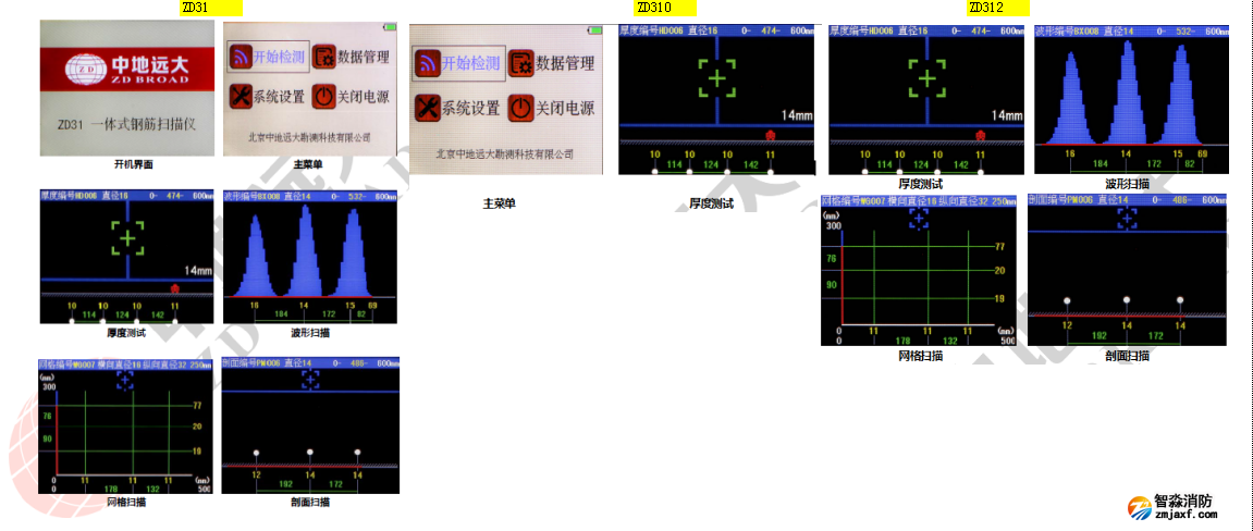 每種檢測模式直觀、精準,準確顯示鋼筋位置、間距、保護層厚度在同一顯示屏;