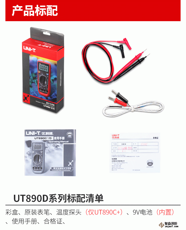 標準配件 | 表筆、電池、溫度探頭 (僅UT890C+) | ||