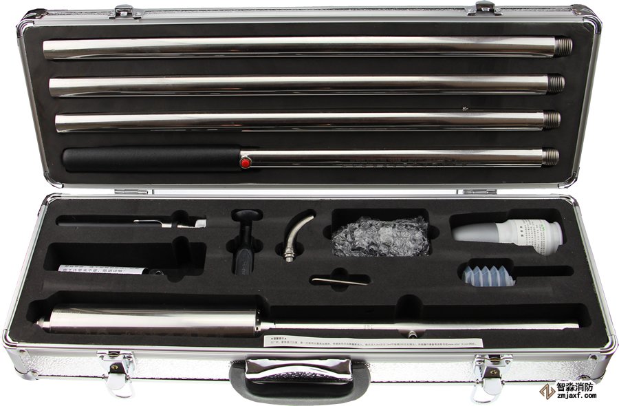 槍頭、連接桿、電池桿、噴頭、充電器、丁烷氣體、簡易伸縮探測器試驗筆、手動報警吸盤、環保香霧液、彈簧注入瓶、扳手。
